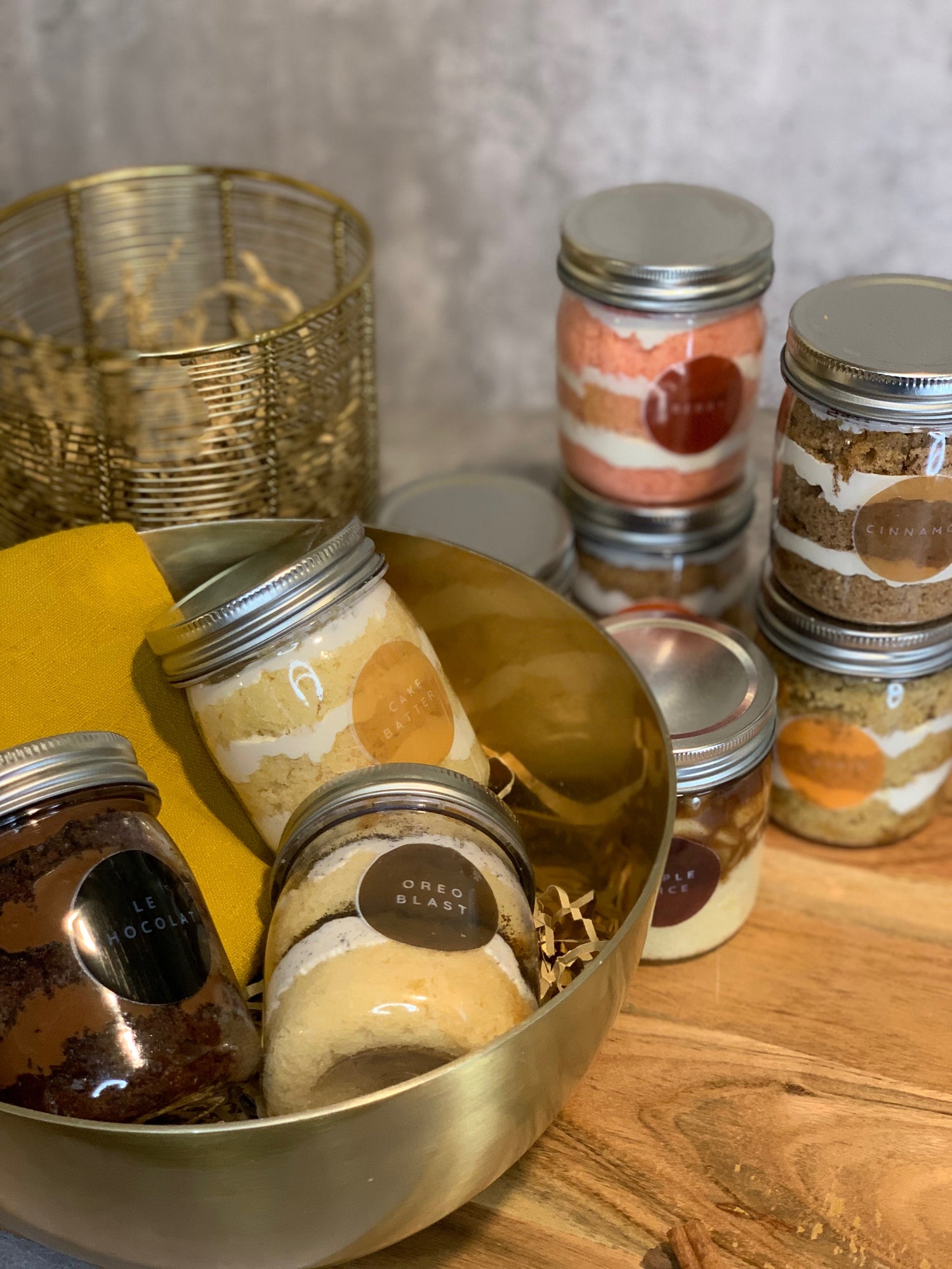 Layers of decadent desert delivered to you in a simple fashion. A perfect treat for Birthday parties, baby showers, wedding flavors, a gift for a love one or just a treat for your self. Satisfy your sweet tooth with a Jar Cake today!